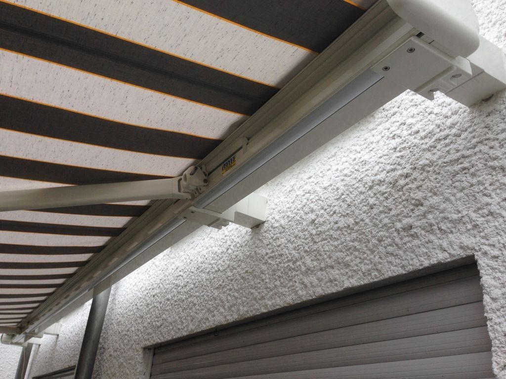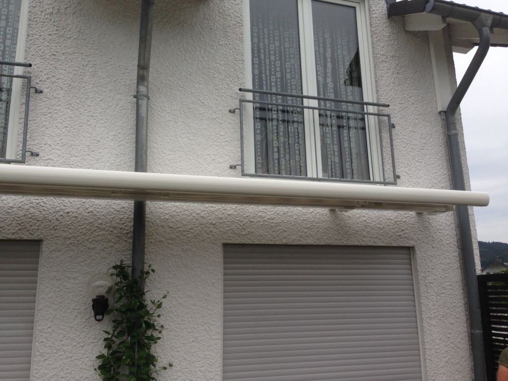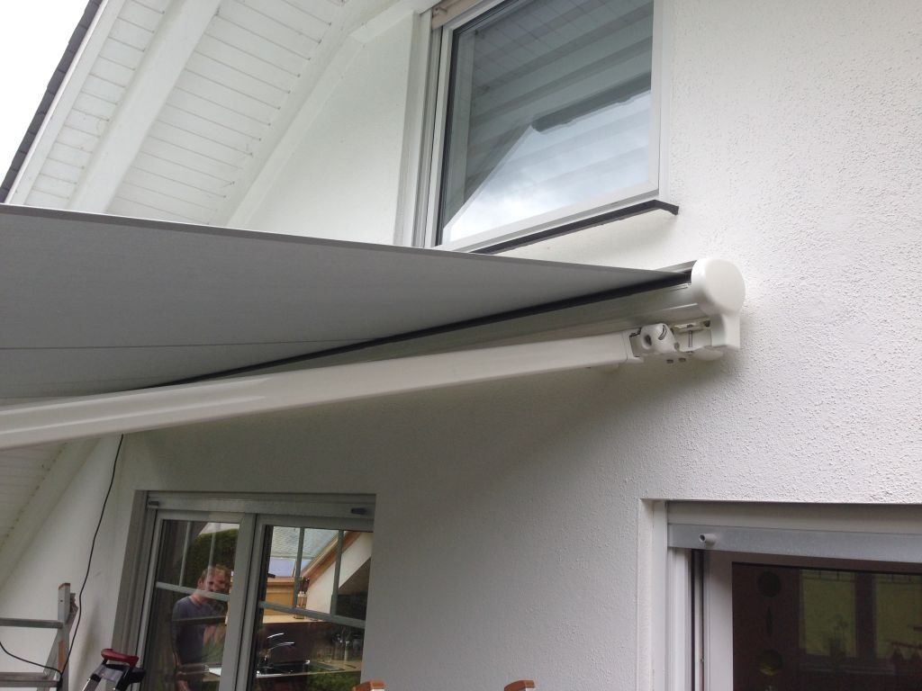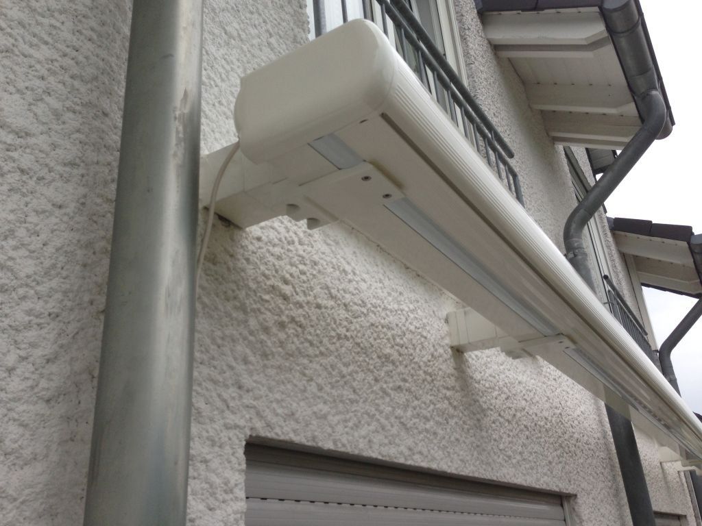 In diesem Montagebeispiel musste die Markise 14cm vom Dämmputz aufgebaut werden da die Dachrinnen