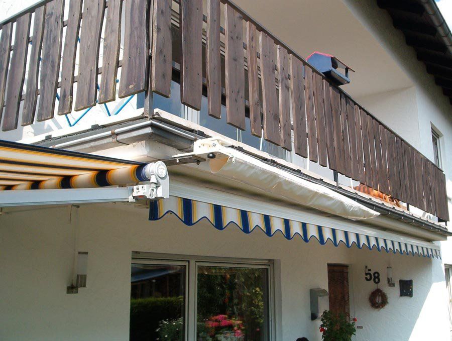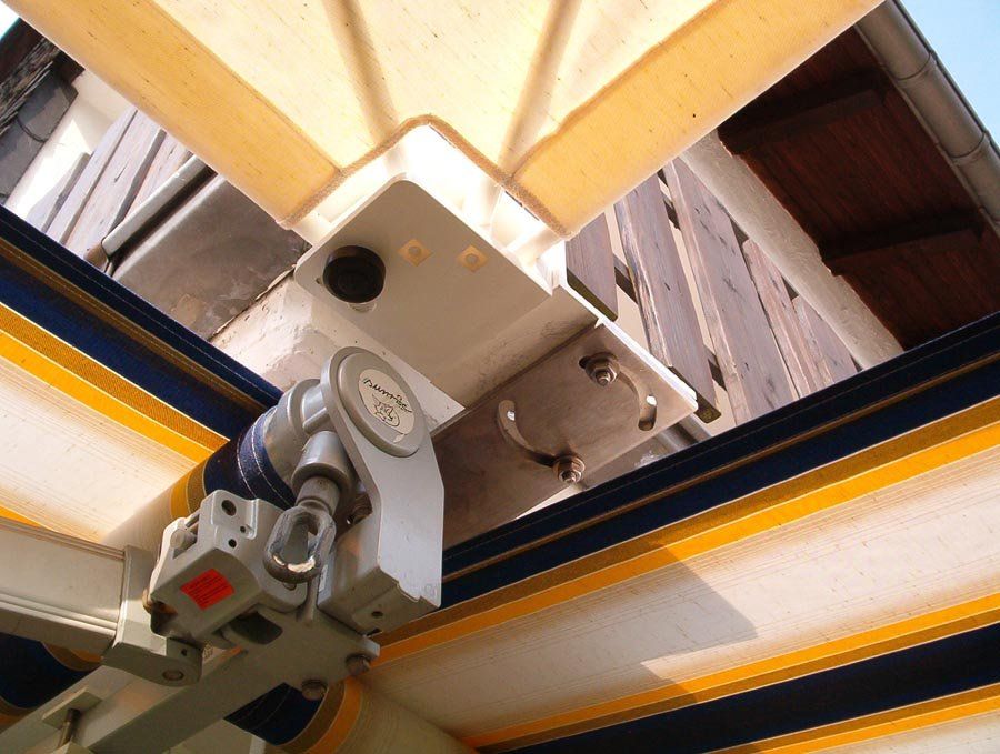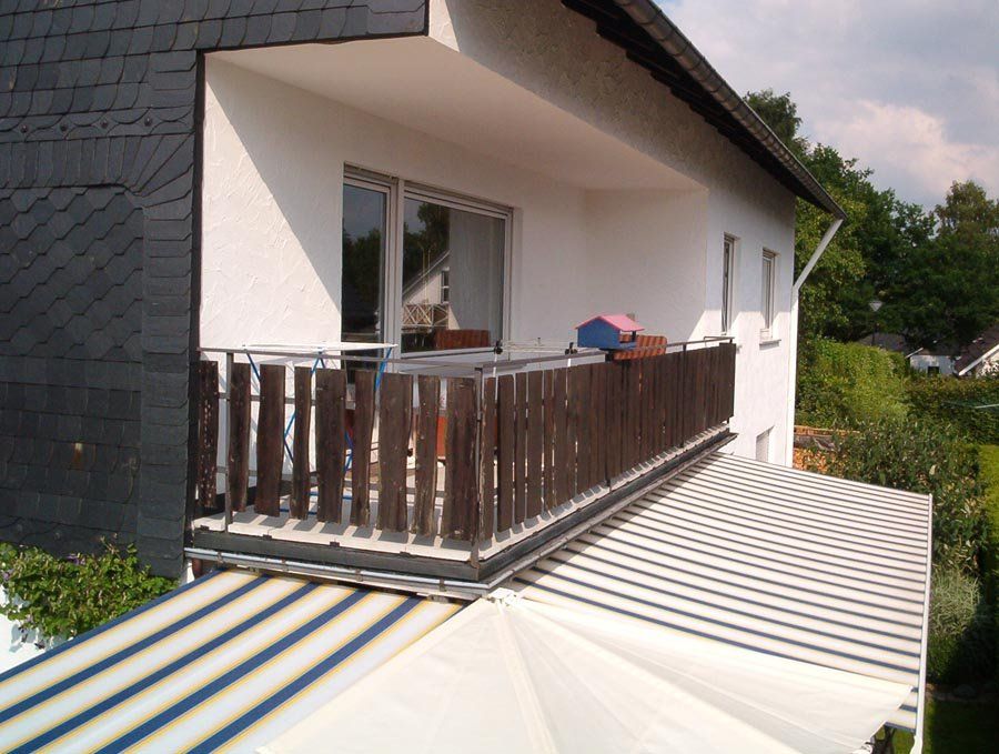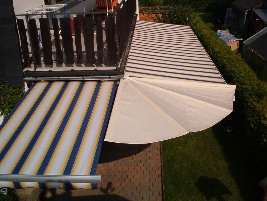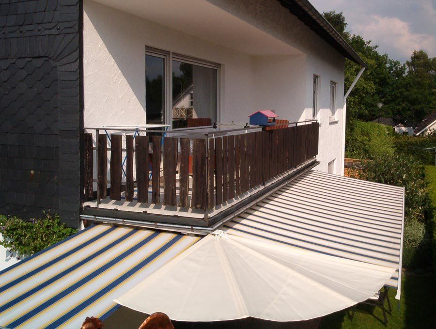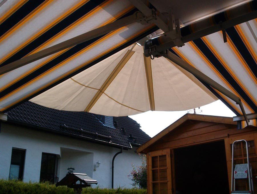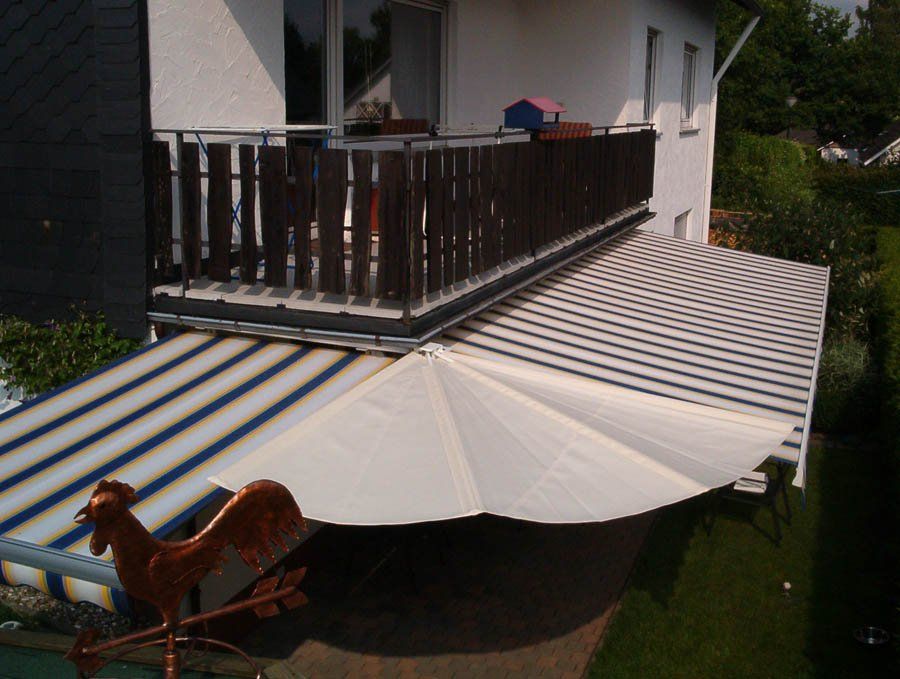 Sonderkonstruktion zu Eckbeschattung mittels eines Wandklappschirm