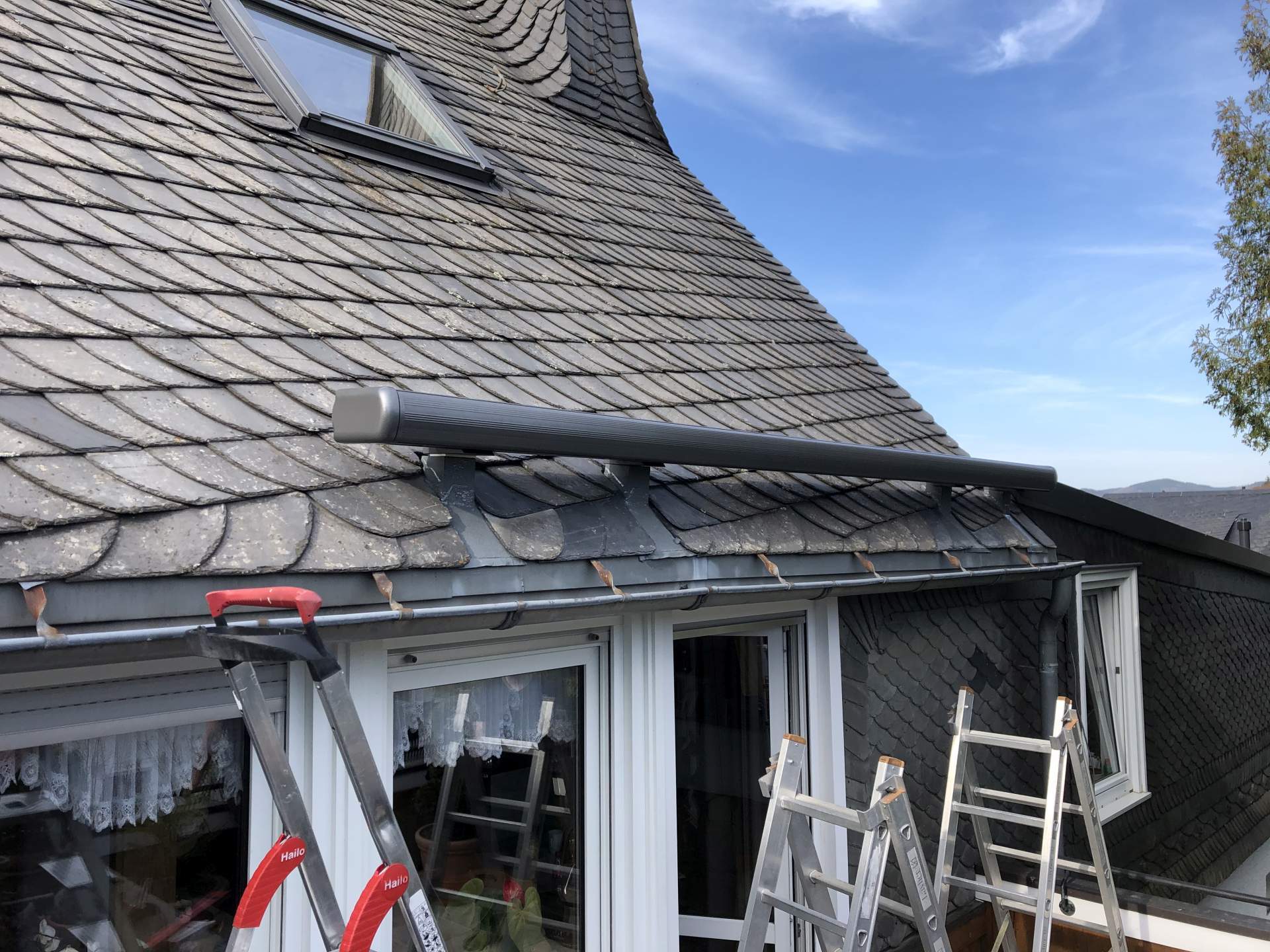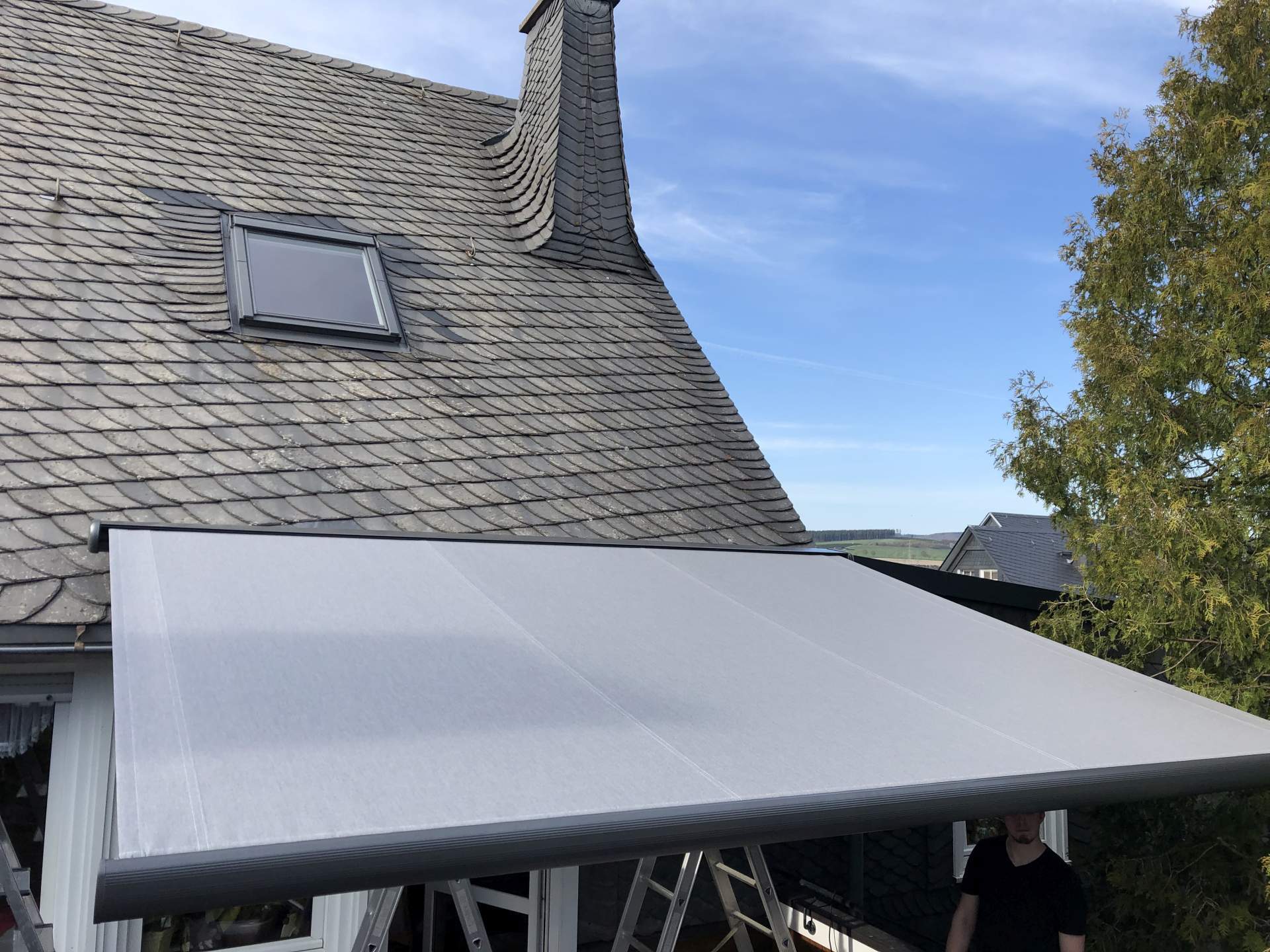 Hier sehen Sie Beispiele für eine Markisenmontage in einem Schacht