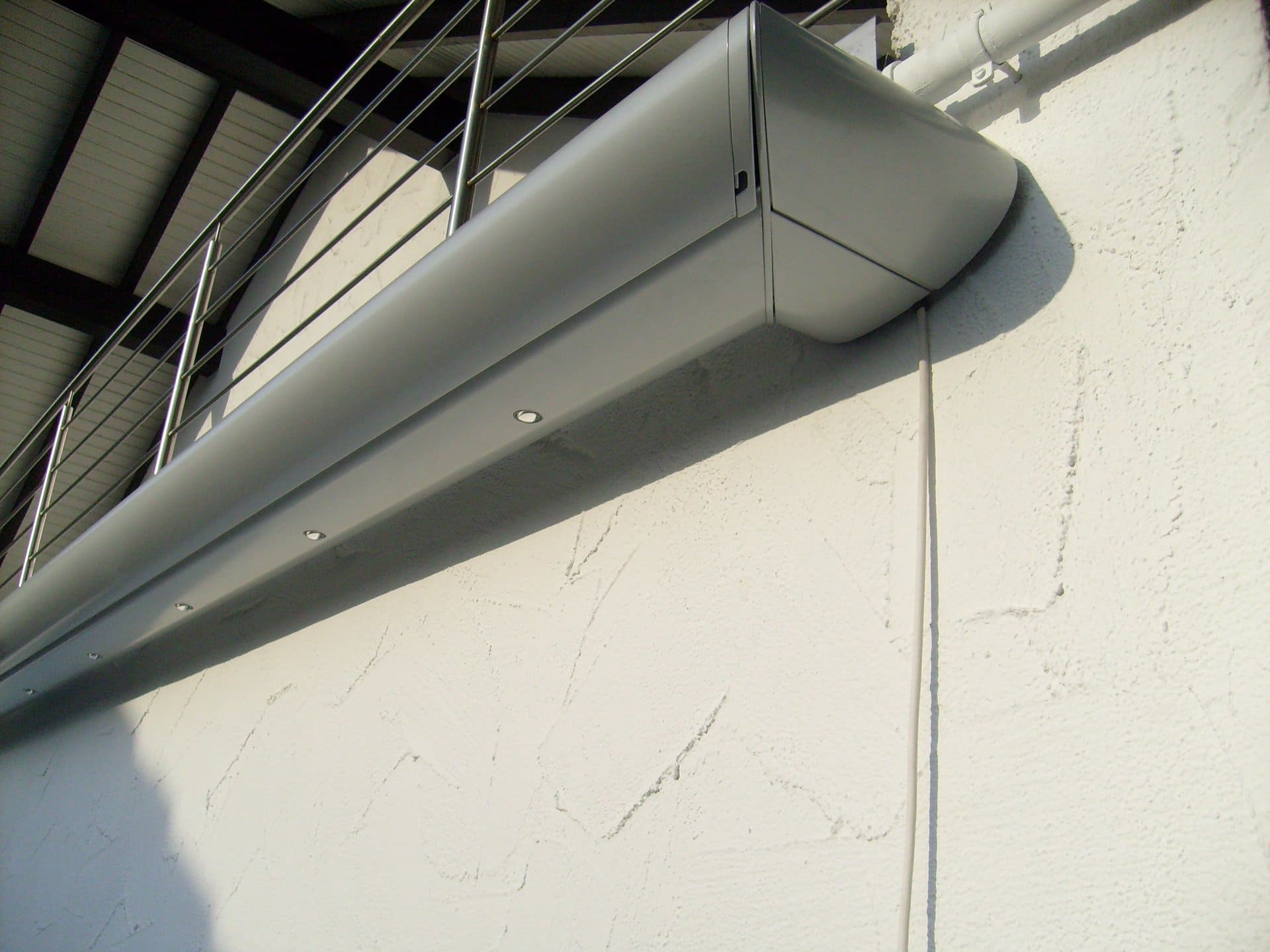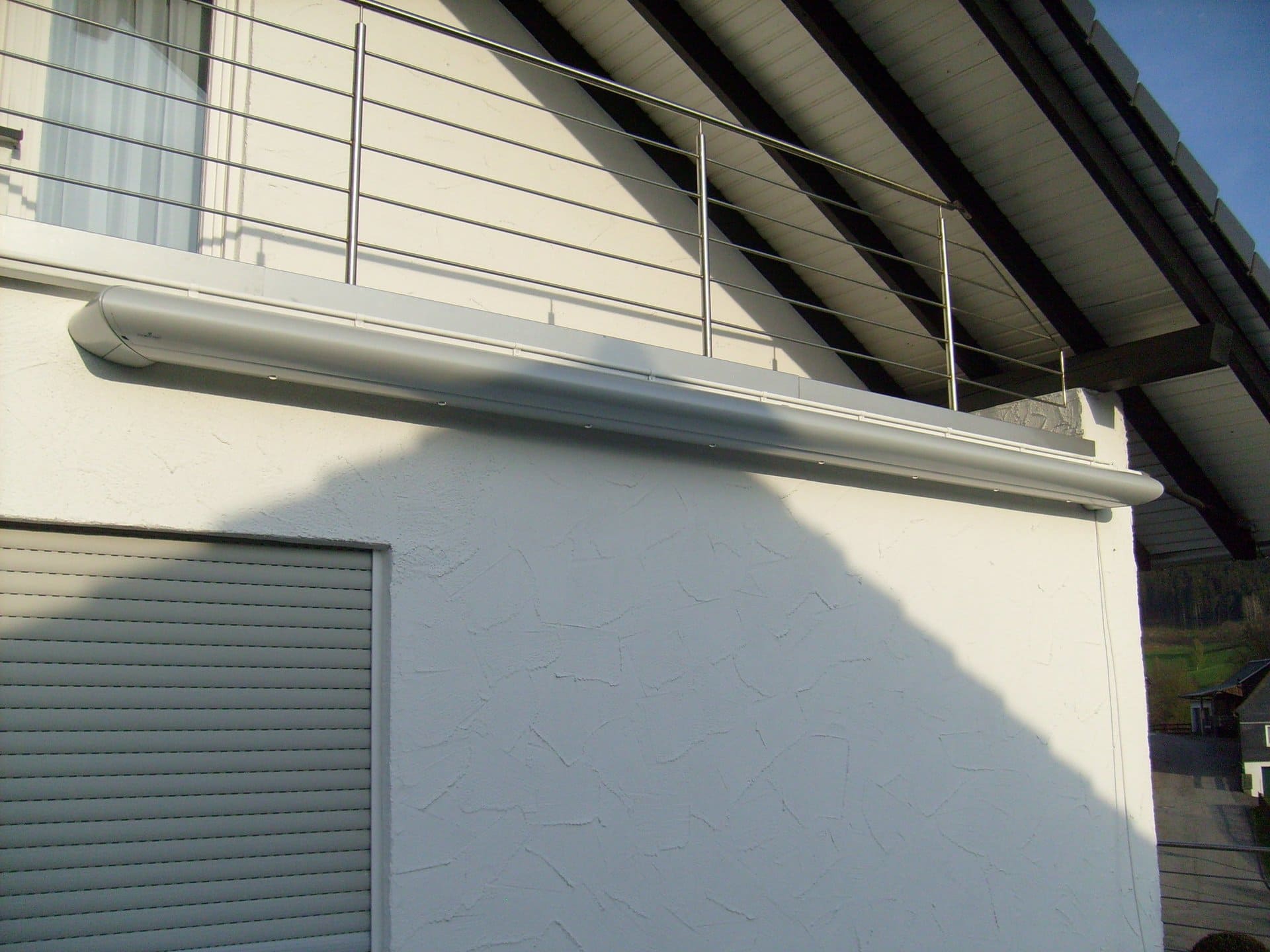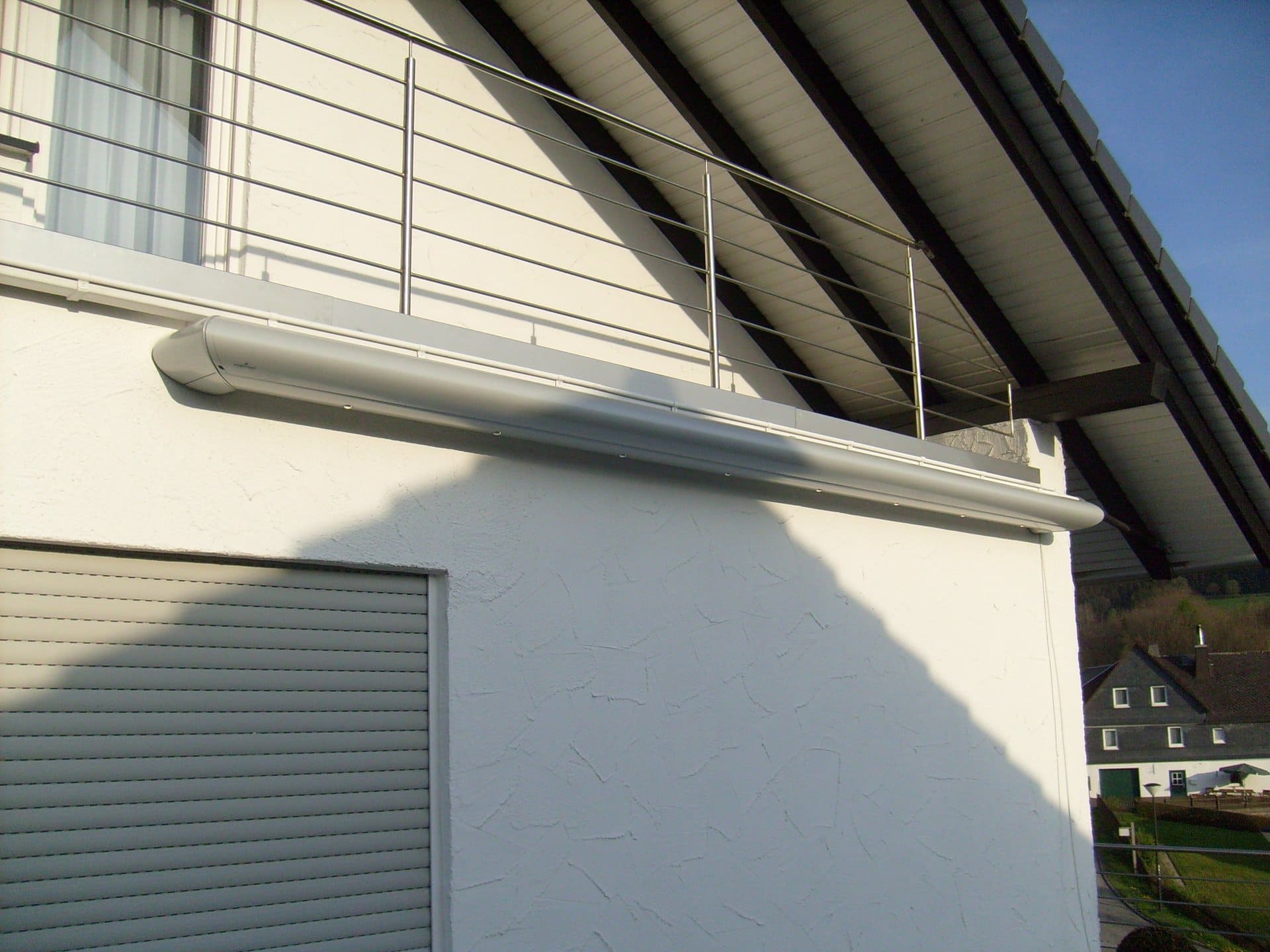 Auch bei großen Breiten bis zu 6,5 m benötigt die innovative Markise nur zwei Befestigungskonsolen statt wie bisher fünf.